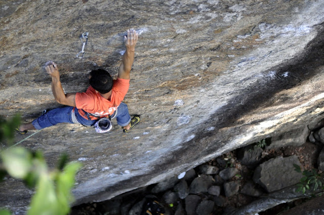 Felipe já chegou no Calogi mandando a via Contra Avalanche 9b sacando costura!